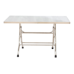 Kiểu dáng: Mặt bàn làm bằng inox 201, khắc laser logo Xuân Hòa và chữ "201 stainless steel", thenh nẹp tăng cứng mặt bàn bằng inox. Khung bàn kết cấu hàn cứng. Chân bàn sử dụng inox 201, Ø32