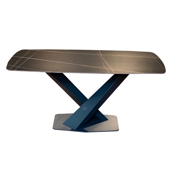 Kiểu dáng: Mặt đá nung kết 11mm, được bo cong R. Khung chân bàn gồm 3 chân trụ thép xếp hình chữ V, đặt trên tấm bích thép nguyên khối cắt laze hình thoi. Có 5 màu đá (Mặt bóng: ST820L, 319, 316 và mặt sần: 006, 025), 3 màu khung chân. Khung bàn và mặt bàn được bao gói catton.