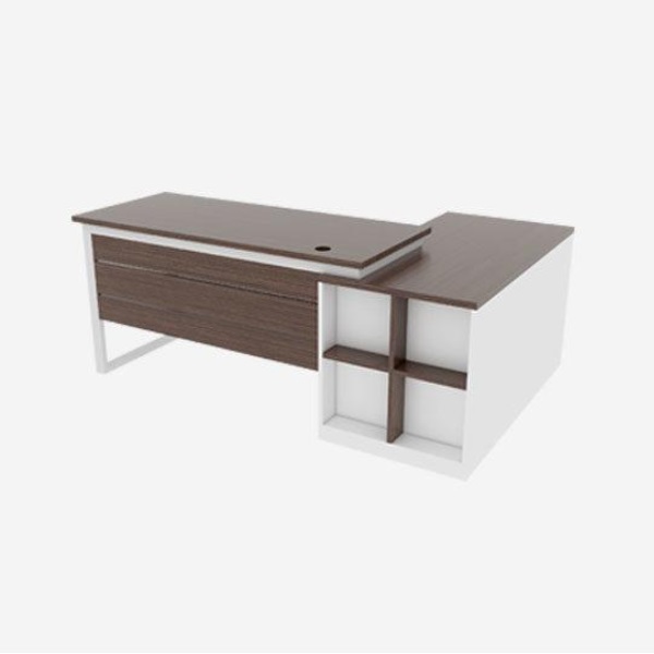 Kiểu dáng: Khung bàn làm bằng thép hộp 25x50 dày 1.2mm, sơn bột tĩnh điện màu trắng hoặc màu đen. Mặt bàn và hộc bàn sử dụng gỗ MFC, màu vân gỗ tối 338 kết hợp màu trắng 101 hoặc toàn bộ màu vân gỗ sáng 388