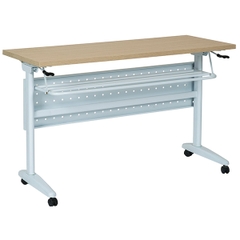 | Kiểu Dáng | Loại bàn hội trường yếm lửng, chân sắt chữ T có bánh xe. Mặt chữ nhật dày 18mm hoặc 25mm. |