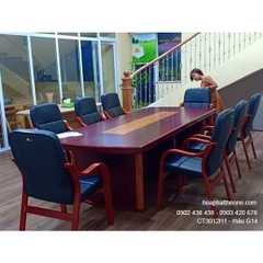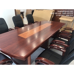 | Kiểu Dáng | Bàn họp mặt ghép 2 phần, mặt hình chữ nhật có 2 cạnh ngắn cong. Bàn có 3 chân ghép hộp. |