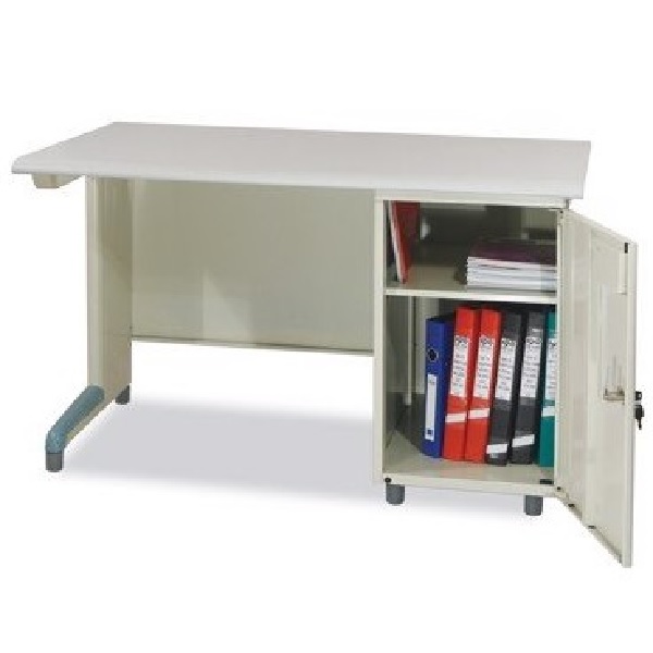 Chất liệu: Mặt gỗ Laminate ghi. Chân, yếm và hộc sắt sơn