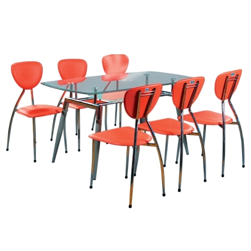 | Kiểu Dáng | Bàn ghế ăn chân tĩnh Ghế 4 chân tĩnh khung thép mạ, đệm tựa bọc PVC dầy. Bàn ăn mặt chữ nhật bo tròng 4 góc bằng kính, có 4 chân khung thép mạ có ngăn bàn |