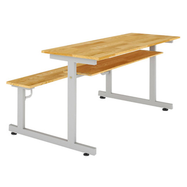 Chất liệu: Khung thép sơn. Mặt bàn và ghế gỗ melamine hoặc gỗ cao su