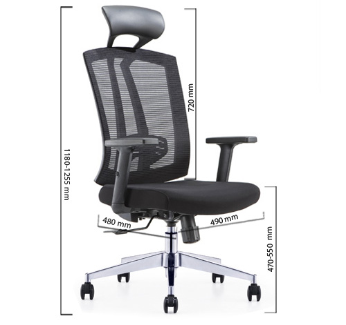 Chất liệu: Tựa đầu bọc da PVC. Lưng lưới cao. Đệm ngồi mút bọc vải cao cấp. Chân nhôm đúc, bánh xe nhựa. Tay ốp nhựa tăng chỉnh