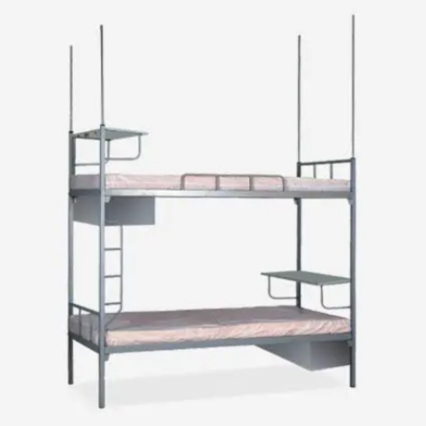 Kiểu dáng: Giường 2 tầng, không có giát, có 4 cọc màn. Khung chân ống 30x30, khung giát ống 25x50. Không có bàn viết và hòm đồ. Có thể mua lẻ các chi tiết thiếu.
