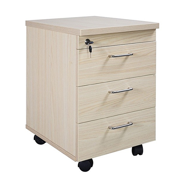Chất liệu: Gỗ công nghiệp Melamine. Hộc 3 ngăn kéo chung khóa. Chân đế có bánh xe
