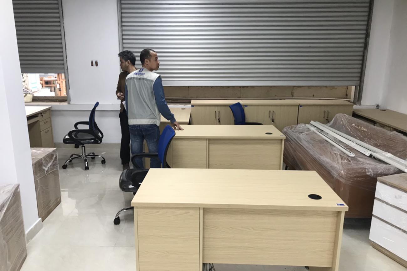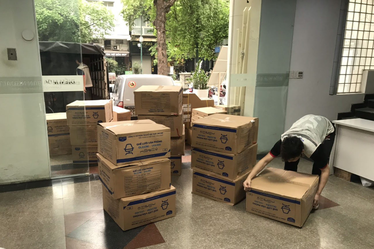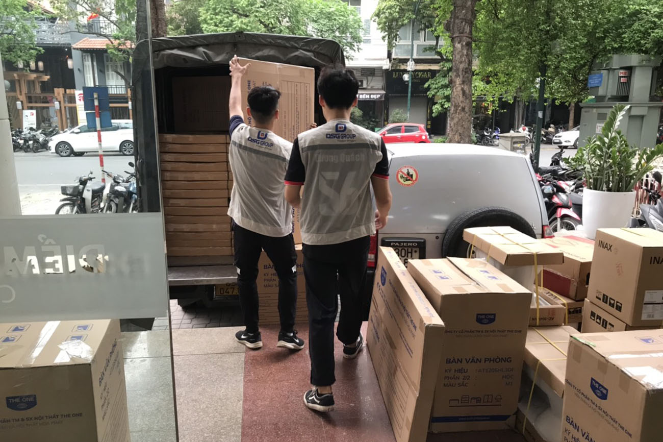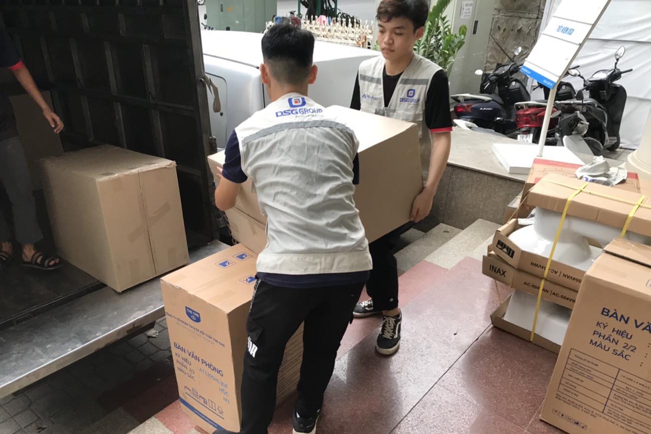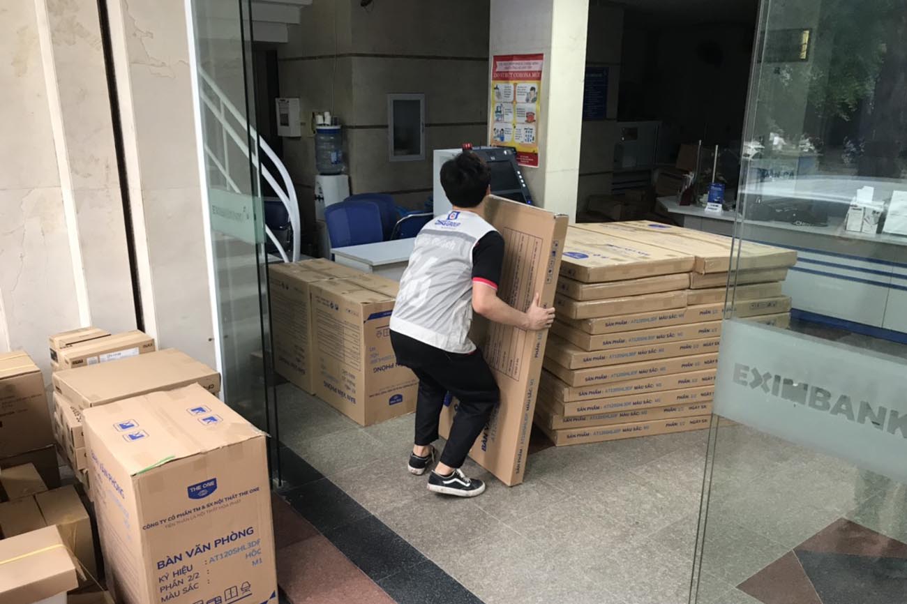 Quá trình Nội thất DSG Group vận chuyển sản phẩm nguyên kiện đến trụ sở Eximbank