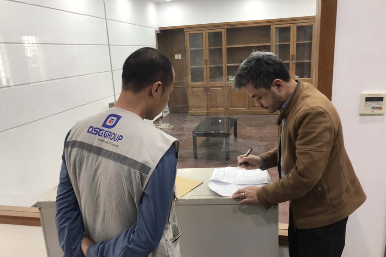 Sau khi được lắp đặt hoàn thiện, lãnh đạo của Eximbank sẽ trực tiếp kiểm tra chất lượng sản phẩm và ký vào giấy xác nhận giao hàng của DSG Group.