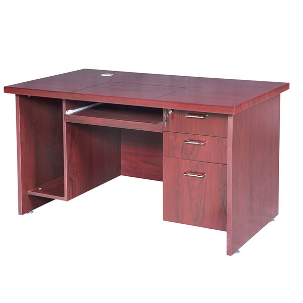 Đó là những mẫu bàn trưởng phòng được làm từ gỗ công nghiệp với lớp sơn phủ PU cao cấp, giúp chống mối mọt, trầy xước và hạn chế thấm nước. Thiết kế của bàn khá đơn giản, với mặt bàn hình chữ nhật truyền thống và hộc tủ tích hợp ở phía dưới.