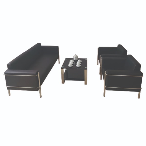 Kiểu dáng: Bộ gồm 1 sofa băng, 2 sofa đơn, giả da. Khung ghế làm từ inox sáng bóng, vững chắc, đệm nút bọc da cao cấp.