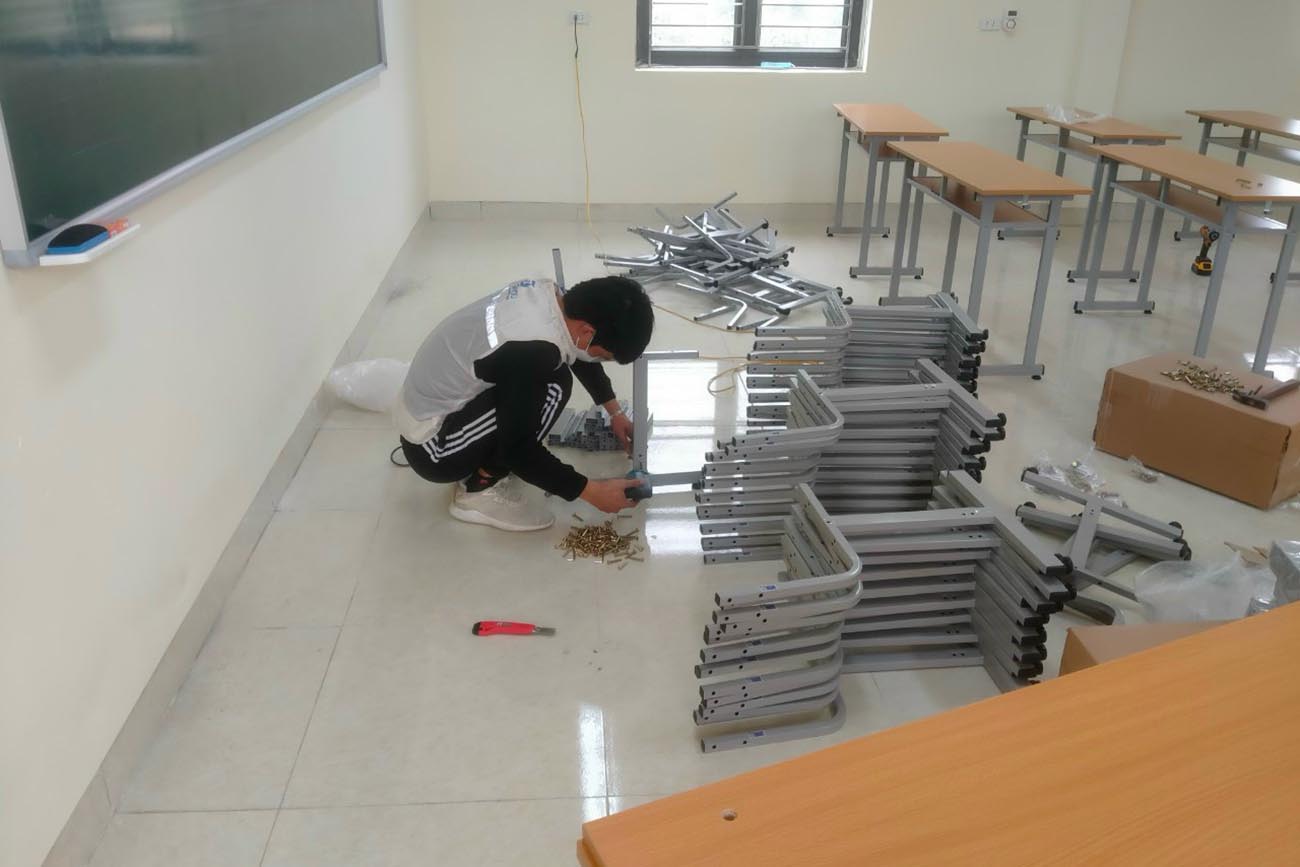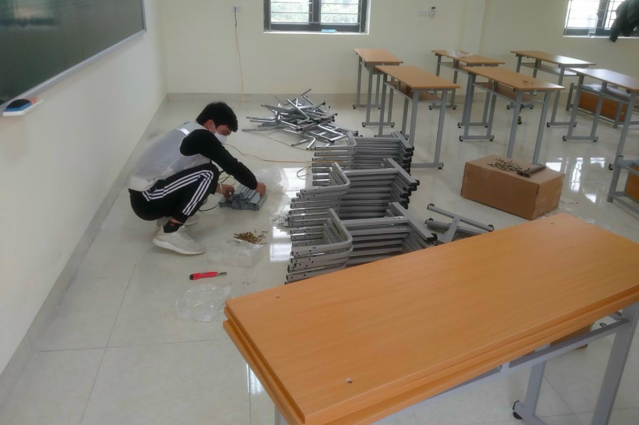 Quá trình DSG Group lắp đặt bàn học sinh tại trường