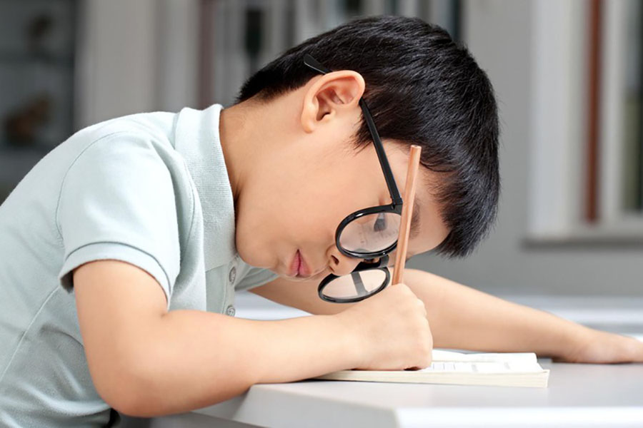 Trẻ ngồi sai tư thế khi học thường có những biểu hiện sau: